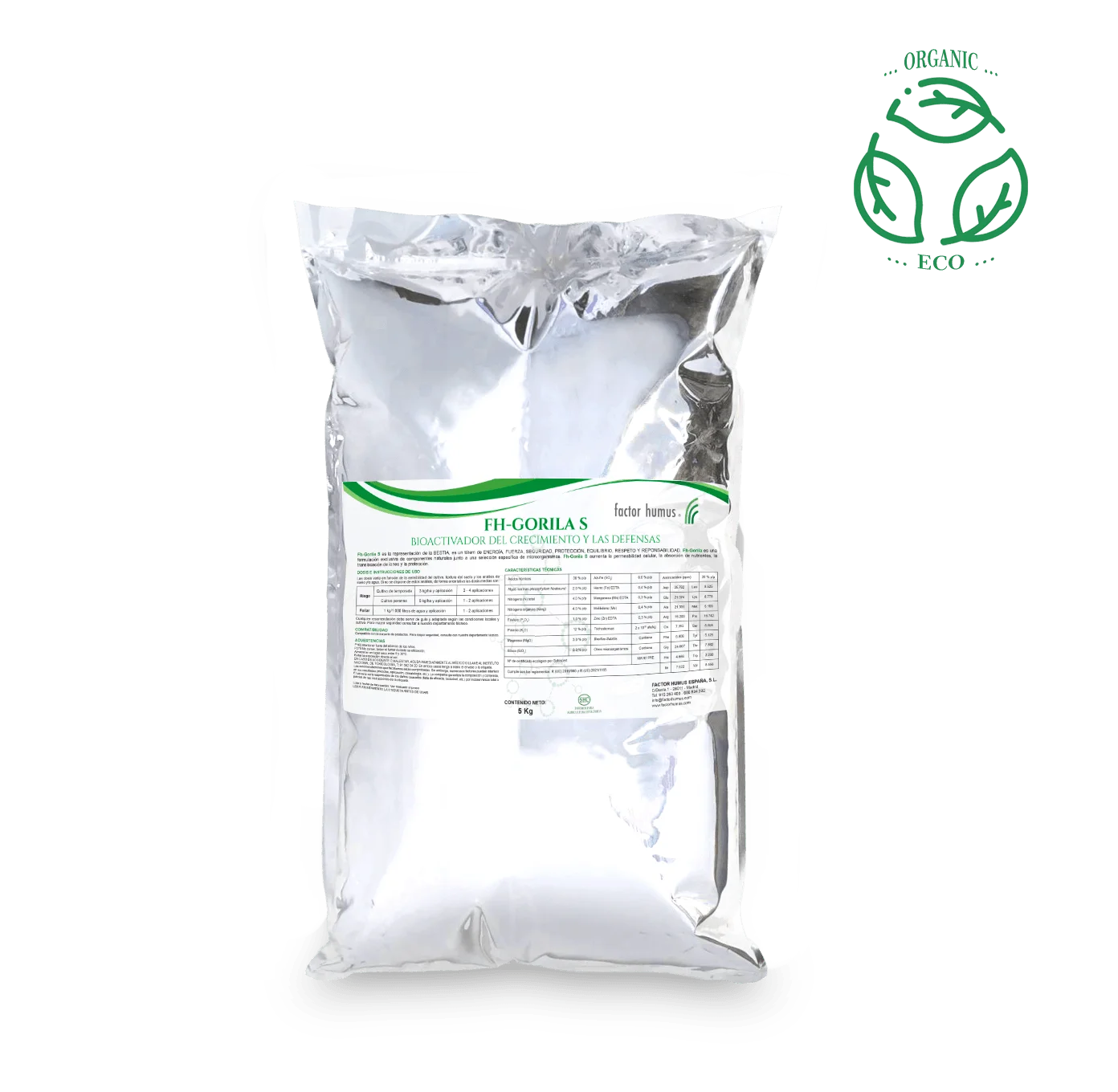 Fh-Gorila es una combinación exclusiva de componentes naturales en forma sólida, enriquecida con una selección específica de microorganismos. Este producto está diseñado para activar e impulsar el crecimiento vegetativo, aumentando la fortaleza de la planta para superar estados de estrés. Además, Fh-Gorila regenera el sistema inmunitario de la planta, incrementando las defensas contra enfermedades.